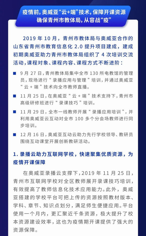 奧威亞“云+端”技術(shù) 助山東省青州市教體局“停課不停學”