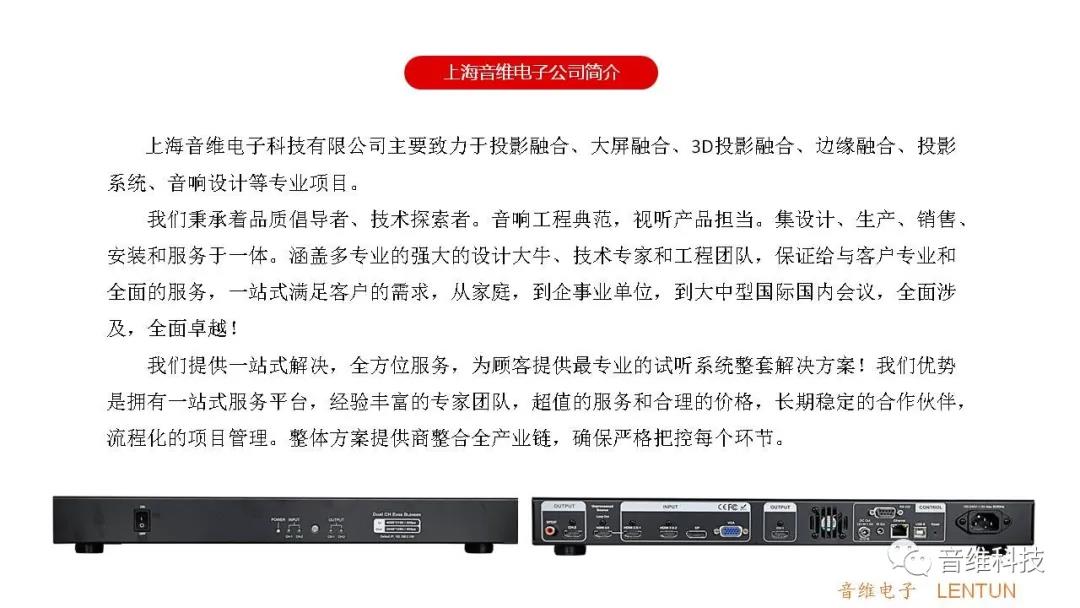 上海音維電子科技有限公司,2012年6月誕生于中國上海,是一家以多媒體設備為基礎的生產和服務公司。