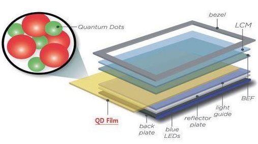 QD LED,也就是量子點背光,這是一種前幾年興起的背光源,本質(zhì)上也是LED,只是采用了肉眼看不到極其微小的無機納米晶體。每當受到光的刺激,量子點便會發(fā)出非常純凈的有色光線,量子點材料之所以能作為背光源,是因為它的色彩純凈。量子點背光的優(yōu)點是色彩飽和度非常高,色彩表現(xiàn)能輕松匹敵RGB LED,并且價格也要比RGB LED更低,不過要高于普通LED背光的顯示設備。