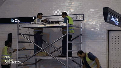 這一次,整個(gè)車站的建筑設(shè)計(jì)中,圓拱形鑲滿白色瓷磚的棚頂,成了多媒體設(shè)計(jì)師的靈感施展空間,也讓每天周而復(fù)始,在此站換乘的乘客們的“兩點(diǎn)一線”不再枯燥乏味。