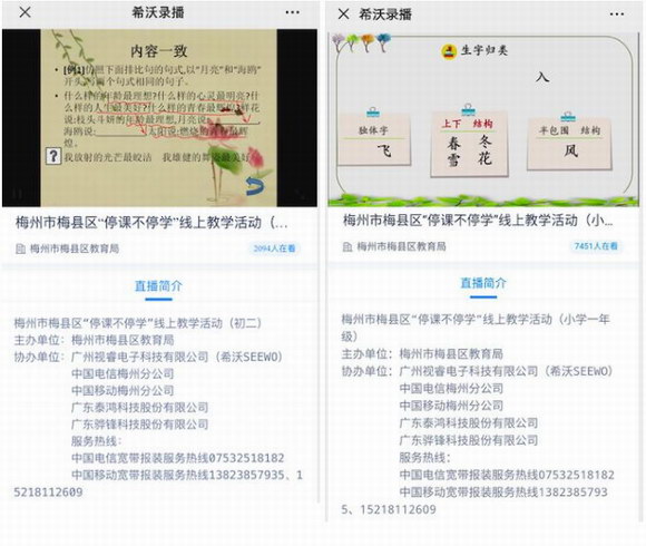 遵從教育部工作指示,領導小組決定以年級為單位,將不同年級課程分配給指定學校進行全區(qū)網(wǎng)絡直播授課。同時每個直播點掛鉤專屬教研員負責課程內容跟進等相關工作。為了保證直播課的順利進行,希沃工作人員連夜安裝調試,有力地保證了直播課如期和同學們見面。