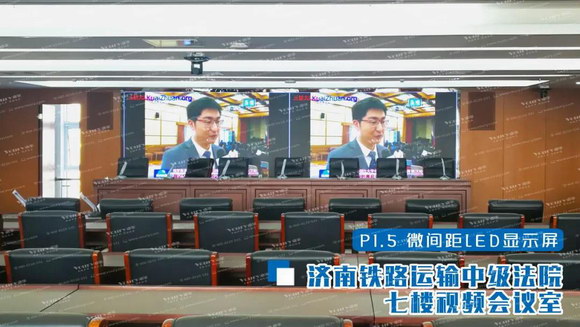 濟(jì)南市鐵路運(yùn)輸中級法院視頻會議室應(yīng)用Voury卓華P1.5微間距LED顯示屏拼接而成,Voury卓華微間距大屏幕系統(tǒng)將本地會場圖像和遠(yuǎn)程會場畫面進(jìn)行清晰的畫面還原,并結(jié)合大屏幕拼接圖像處理技術(shù)融合技術(shù),使會議雙方與會者感覺如在同一會議室,實現(xiàn)了高臨場感的遠(yuǎn)程會議體驗,滿足政企日常會議,實現(xiàn)及時溝通、高效運(yùn)作。