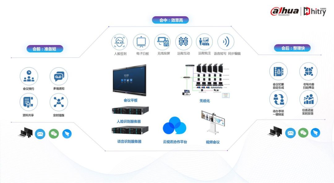 大華股份通過自主研發(fā)會議終端、會議平板、4K會議相機等智能會議設(shè)備,打造視頻會議服務(wù),形成以音視頻技術(shù)為核心、以安全可靠為基準、結(jié)合AI算法的業(yè)務(wù)應(yīng)用,深度整合5G業(yè)務(wù)及物聯(lián)網(wǎng)技術(shù)、借助先進的云應(yīng)用,打造全實時、高可靠、高可用、超易用的沉浸式視頻互通體驗,幫助用戶足不出戶就能實現(xiàn)高效的溝通與專業(yè)的協(xié)同,讓溝通、協(xié)作零距離。