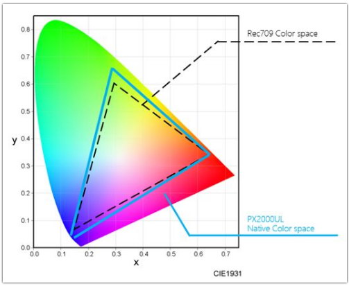 PX2000UL+所采用的紅藍(lán)雙色激光技術(shù)提升了1DLP技術(shù)投影機(jī)的色彩表現(xiàn),讓畫面實(shí)現(xiàn)了接近REC 709級別的大色域,使PX2000UL+成為目前性價(jià)比最優(yōu)秀的高色彩高亮度的激光投影產(chǎn)品之一。