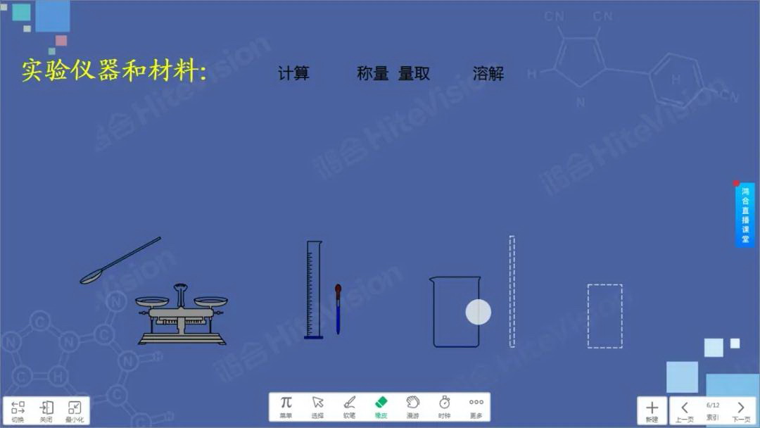 作為化學(xué)老師,駱老師通過鴻合直播互動(dòng)平臺(tái)上了一節(jié)《溶液的配置》基礎(chǔ)實(shí)驗(yàn)課,課程將鴻合π交互教學(xué)軟件應(yīng)用到化學(xué)課教學(xué)中,為屏幕前的老師們展示了在教學(xué)過程中如果可以多借助一些教學(xué)軟件或工具,對(duì)提高我們的課堂教學(xué)效果會(huì)很有幫助。