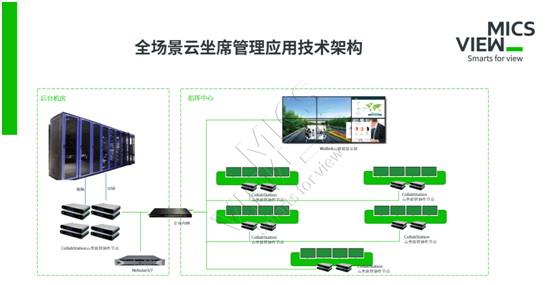 依托企業(yè)內(nèi)網(wǎng),通過端節(jié)點將后臺信號與CollabStation云坐席連接,實現(xiàn)每一個席位都具備對后臺的控制。同時它也可以與MICS云打通,享受MICS云服務(wù)。這種架構(gòu)具備拓展性,適應(yīng)所有以坐席為主的應(yīng)用場景。