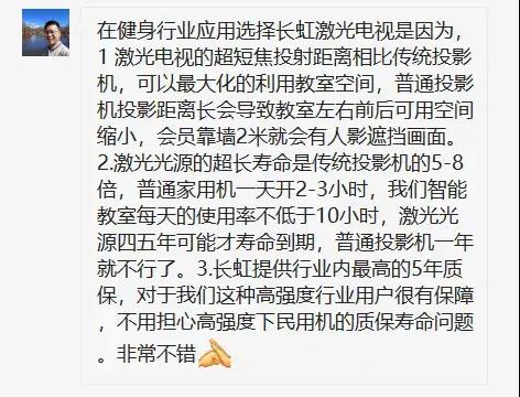 談到為什么選擇長虹作為無人健身房核心硬件--激光電視的供應(yīng)商,悅健時刻CEO何濤先生說: