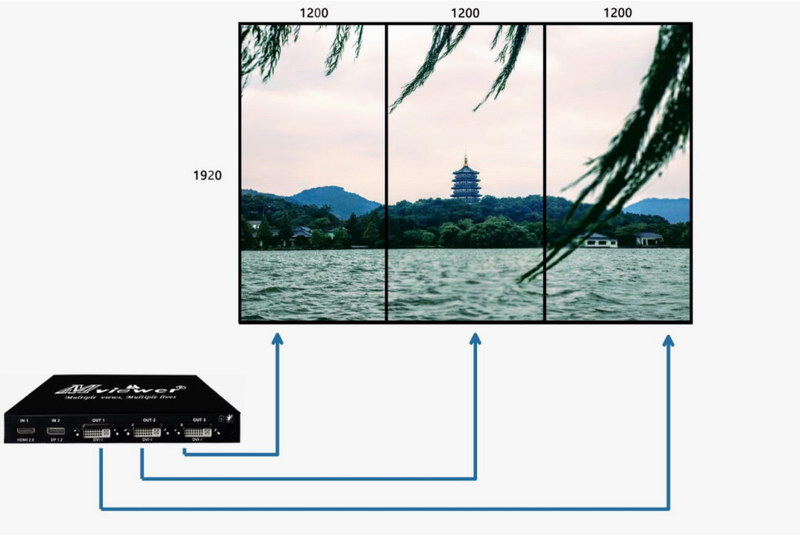 MV303三屏寶旗艦版——設(shè)備支持5760x1200@60hz,6144x1200@60Hz,1920x3600@60hz,2048x3600@60Hz任意垂直和水平分割。