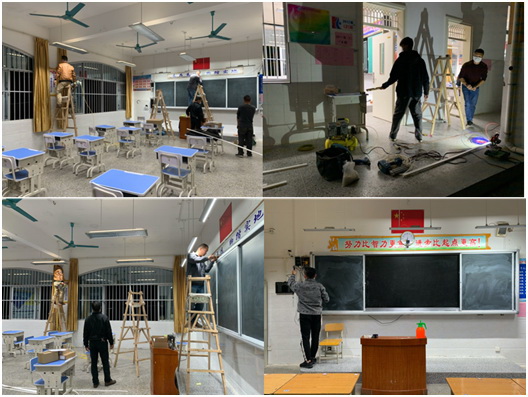 為了做好本次分班教學的服務保障工作,希沃團隊也早早開始了準備工作。此次開學,單單是青秀區(qū),就涉及到10個學校,共計83套希沃互動錄播設備的安裝調試工作。好在希沃互動錄播的安裝調試相較傳統(tǒng)錄播設備要更加方便快捷,在時間緊、任務重的情況下還是圓滿完成了準備工作。