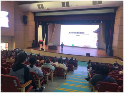 為了讓老師們能夠熟練使用設備分班教學,希沃培訓師們還專門針對上課場景為他們進行培訓,從基礎功能開啟錄制、直播,到完整的同屏操作、互動答題等等均做了詳細講解,同時,每個學校均派工作人員進行駐點支持,以保證首日上課的順利進行。