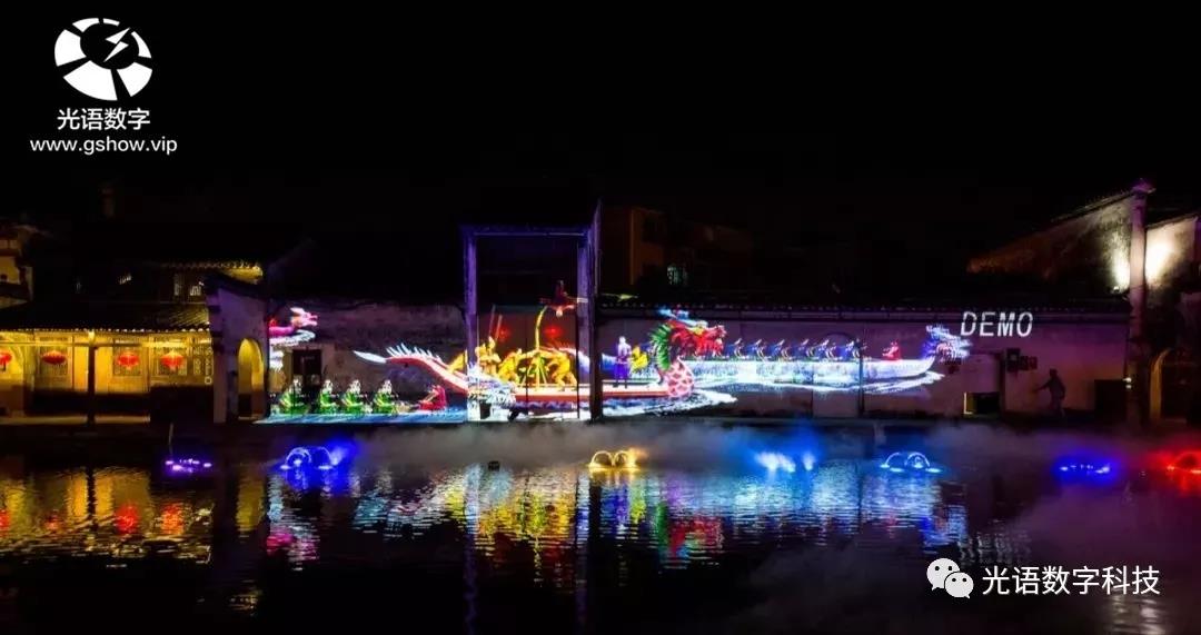 目前國內(nèi)優(yōu)秀的燈光秀是大多是以投影為載體,主要形式是以建筑實體墻面或大江大河水體、或森林、山體等為云幕,也就是我們所說的全息燈光秀。