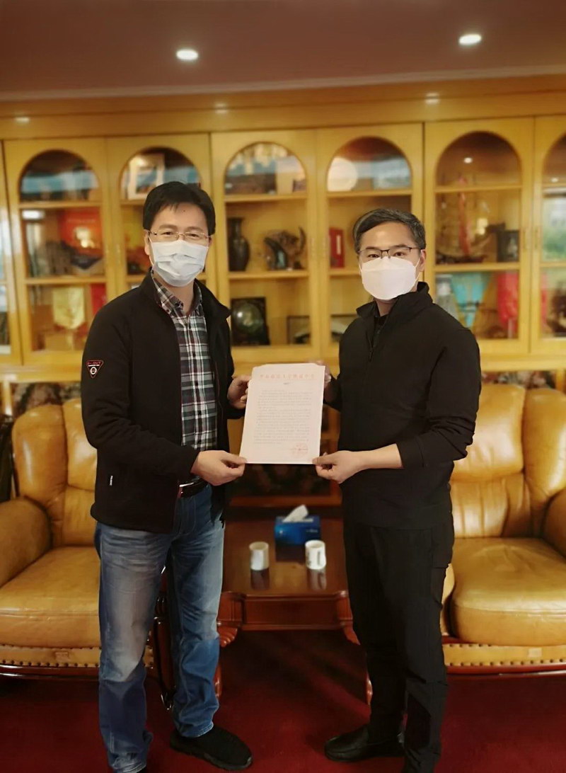 圖為華南師范大學附屬中學校長姚訓琪(左)與廣州市奧威亞電子科技有限公司董事長姚勇(右)