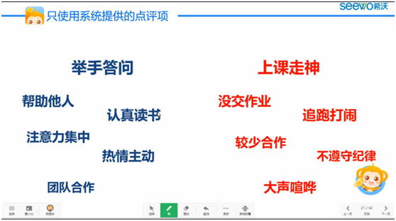 井大小學(xué)部分老師原本就是班優(yōu)的老用戶,所以楊老師在解決了基礎(chǔ)問題之后,針對點評學(xué)生功能的使用上又給出了一點建議,使得評語更加有創(chuàng)意,增強對學(xué)生的激勵作用。
