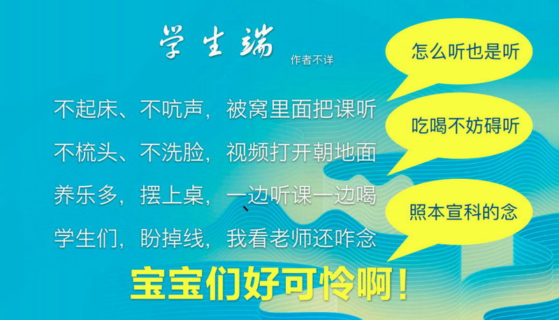 面對(duì)疫情期間的線上授課,老師和學(xué)生都有各自的困擾。