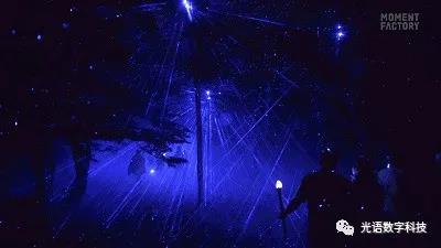 沉浸式夜游是將沉浸式娛樂模式引入景區(qū),是藝術(shù)與技術(shù)的完美結(jié)合,具有鮮明的連結(jié)性與互動(dòng)性,它力求身臨其境感,使觀眾“沉浸”于旅游景區(qū)內(nèi)。以Moment Factory 在魁北克 Coaticook 峽谷做的「幻光森林」為例,應(yīng)用了多媒體藝術(shù)的激光、燈光、投影,將實(shí)景山水“超自然化”,在游覽、玩樂中融入當(dāng)?shù)氐膫髡f,變參觀為游戲。該項(xiàng)目讓當(dāng)?shù)氐目土髁吭黾恿?1800%。