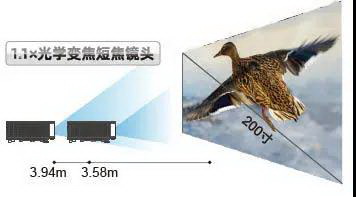 0.81~0.89:1短焦鏡頭升級投射比指標,無光損,亮度無衰減,亮度輸出更充沛。支持1.1倍光學變焦,在短距離安裝具有更大的環(huán)境適應性。