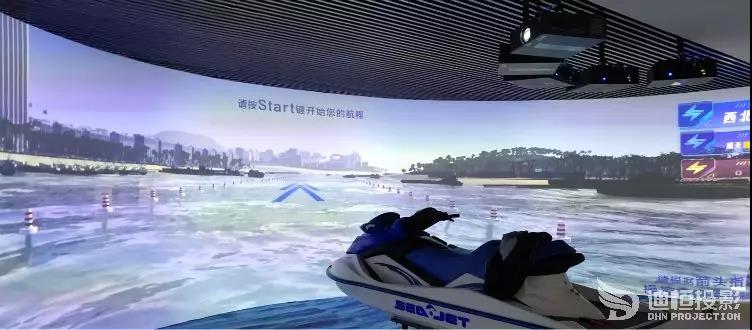 環(huán)幕投影(折幕投影):環(huán)幕投影,是一種視聽高度沉浸的虛擬顯示環(huán)境,采用多臺投影(通道)組成的環(huán)形投影屏幕,使參與者充分體驗一種身臨其境的三維立體視聽感受,獲得一個具有高度沉浸感的虛擬可視環(huán)境。