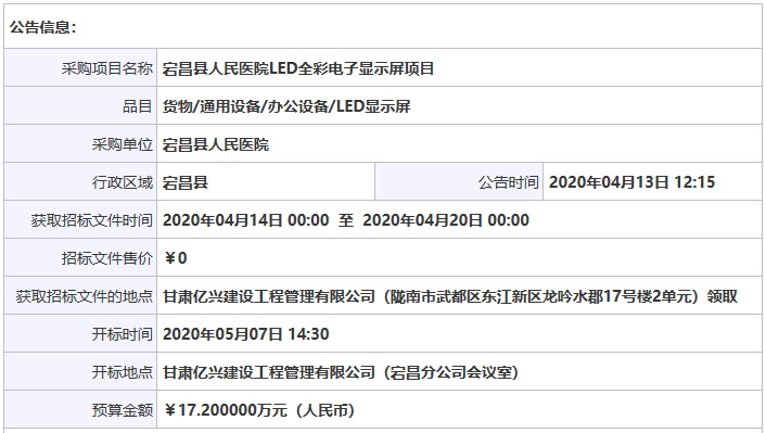 宕昌縣人民醫(yī)院LED全彩電子顯示屏項目公開招