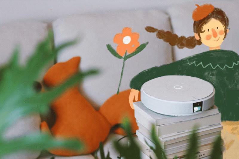 然而,隨著年齡的增長,一些思維定勢禁錮了我們的想象力,看待事物的角度也變得單一無趣。在普通人眼中,堅果G7S就是個平平無奇的圓形投影儀,但在插畫師充滿創(chuàng)意想法的奇妙世界里,它卻是個時時掛著笑臉的小孩,抑或是個百寶箱,裝滿了萬千世界,等待人們?nèi)ラ_啟。