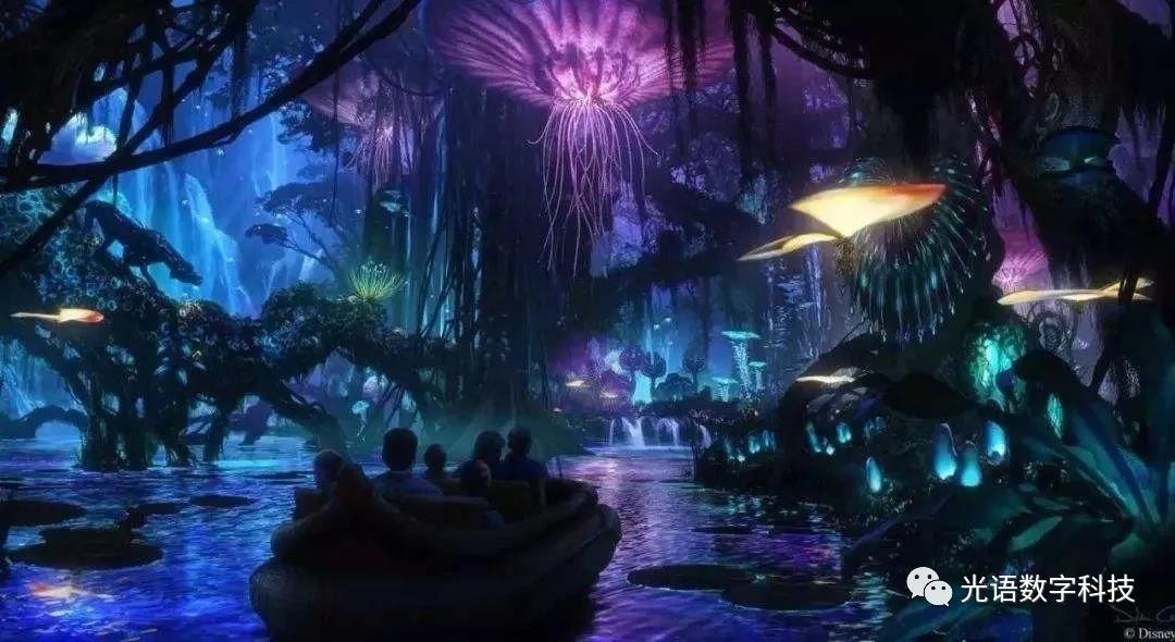 另一方面,沉浸式體驗在夜游產(chǎn)品的開發(fā)中應(yīng)用也越來越廣泛。近年來,國內(nèi)外知名景區(qū)和主題公園紛紛上線沉浸式體驗項目,極大地豐富了游客的旅游體驗。如美國奧蘭多迪士尼的“潘多拉-阿凡達(dá)世界”主題樂園中的“納美河之旅”沉浸式體驗項目深受游客喜愛,游客可乘船穿越熒光森林,感受夜景中各種發(fā)光生物的奇妙;又如藝術(shù)家Friedrich van Schoor利用投影技術(shù),讓森林復(fù)活,為樹葉、蘑菇和枯枝披上最華麗的衣裳。