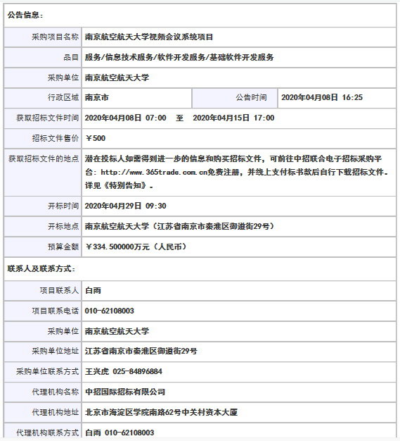 采購項目名稱: 南京航空航天大學(xué)視頻會議系統(tǒng)項目