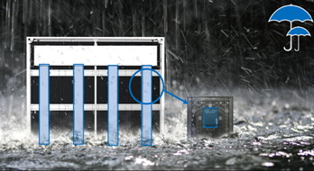 3)獨立防水模組、背部帶有防護底殼,能有效防止水汽,水霧對模組背部電子元器件造成損害。背面帶有線路防雨蓋,能有效防止水沖擊,倒流等現(xiàn)象,能很好的應用于濕度高,腐蝕性強,灰塵大等惡劣環(huán)境。