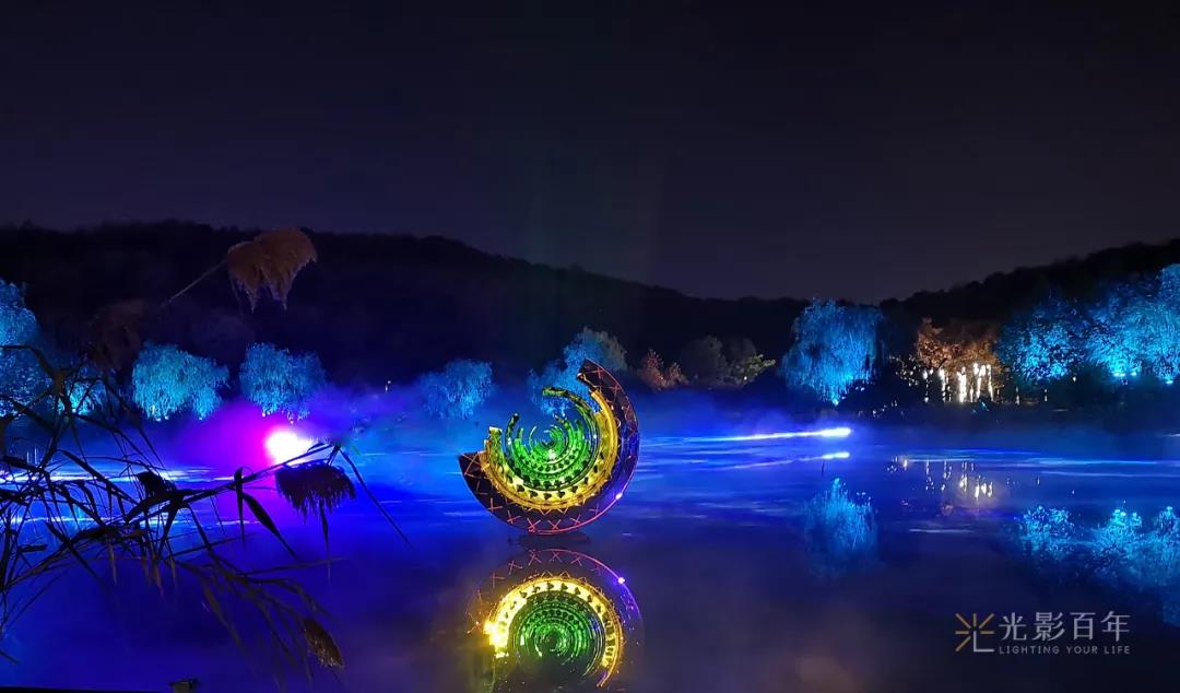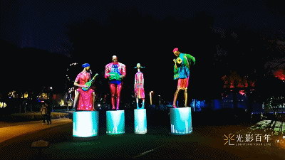隨著夜幕降臨,這些造型各異的雕塑作品在燈光的映射下,以光影為裳款款步入我們視線。夢(mèng)幻的林間3D亮化,營(yíng)造出科技與藝術(shù)結(jié)合的視覺(jué)效果。