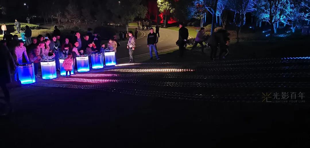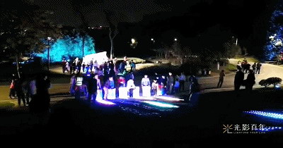 游客們跳躍起,踩踏地面琴鍵上,引領(lǐng)流光,