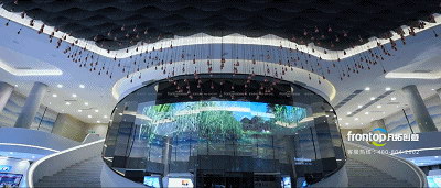 步入序廳,置身于震撼的機(jī)械藝術(shù)矩陣裝置之下,大氣的水鄉(xiāng)初印象呈現(xiàn)眼前。當(dāng)我們走進(jìn)中央感應(yīng)區(qū),超大弧形通電鏡面屏以習(xí)近平總書記的重要指示拉開序幕。