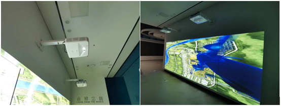 此次,2臺(tái)Acer LU-U500激光短焦投影機(jī)強(qiáng)強(qiáng)聯(lián)手,采用并排懸掛的方式為崇州大數(shù)據(jù)中心打造了6.15米x2.05米的寬幅拼接投影。得益于超短焦激光投影技術(shù),LU-U500可在51厘米的短距離投射出100英寸的超大畫面,這使得投影機(jī)的安裝極具靈活性,在空間有限的展示廳里,依然可以呈現(xiàn)巨幅投影。
