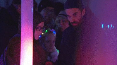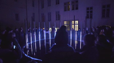 燈照亮周圍的立面,然后將光束轉(zhuǎn)向附近的圍觀者