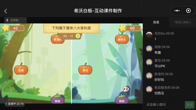 “你們來的真是太及時(shí)了,聽了培訓(xùn)之后感覺希沃的功能好強(qiáng)大,特別是希沃白板的課堂互動(dòng)功能,之后可以運(yùn)用到課堂中活躍班級(jí)的課堂氛圍;還有知識(shí)膠囊功能,學(xué)生只要通過掃碼就能參加學(xué)習(xí),特別的方便。”蘆溪中學(xué)高一班主任傅老師說到。
