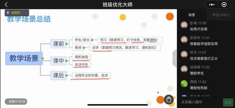 “這次培訓(xùn)對(duì)班級(jí)優(yōu)化大師功能印象深刻,培訓(xùn)老師針對(duì)課前、課中、課后的教學(xué)場(chǎng)景做了詳細(xì)的講解,比如一鍵發(fā)布通知功能等,讓我能知道哪些家長(zhǎng)閱讀了信息,有效的避免了微信群刷屏的情況。”麻田中學(xué)初三畢業(yè)班嚴(yán)老師說到。