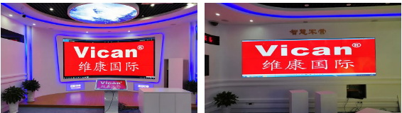 維康國(guó)際2組(3×4和2×4)55寸0.88mm液晶拼接屏、1組P1.875LED軟模組和若干觸摸一體機(jī)應(yīng)用于浪潮集團(tuán)展廳。
