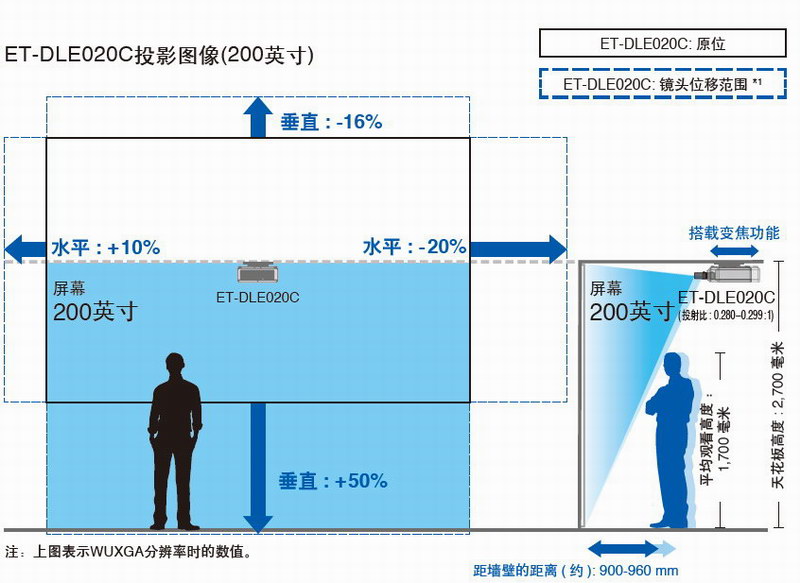 *1.直投安裝且分辨率為WUXGA時得出的數值。鏡頭位移數值因機型而異。