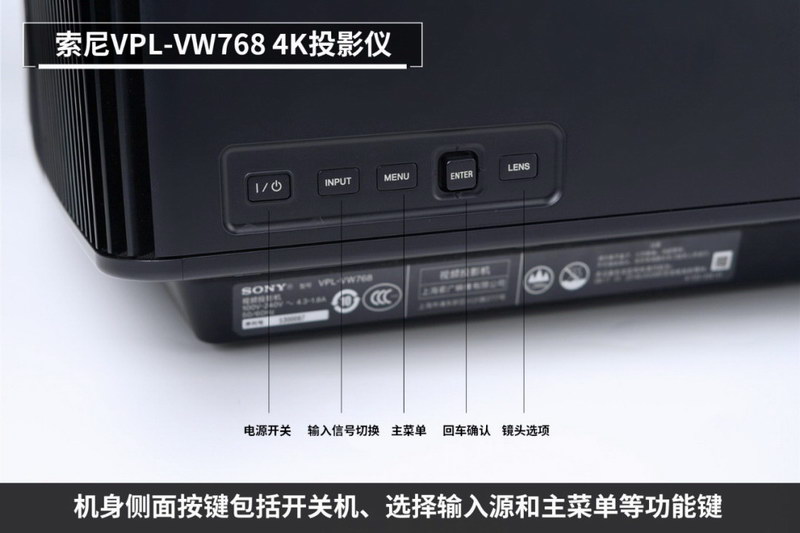 索尼VPL-VW768 4K投影儀的鏡頭附近沒有配備變焦環(huán),因為它同索尼高端投影產(chǎn)品線一樣,采用了高規(guī)格全電動鏡頭,包括變焦、對焦與鏡頭位移功能都能直接透過遙控器來實現(xiàn)。