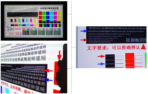 再來看由錢元凱教授繪制的專業(yè)4K測試圖,可以看到索尼VPL-VW768的投射畫面能夠完美顯示出4K專業(yè)測試圖中的各項表現(xiàn),無論是右上角的色塊中的線條,左上角的中英文字符,又或者是左下角中的數(shù)字和線條都可以看得非常清楚。