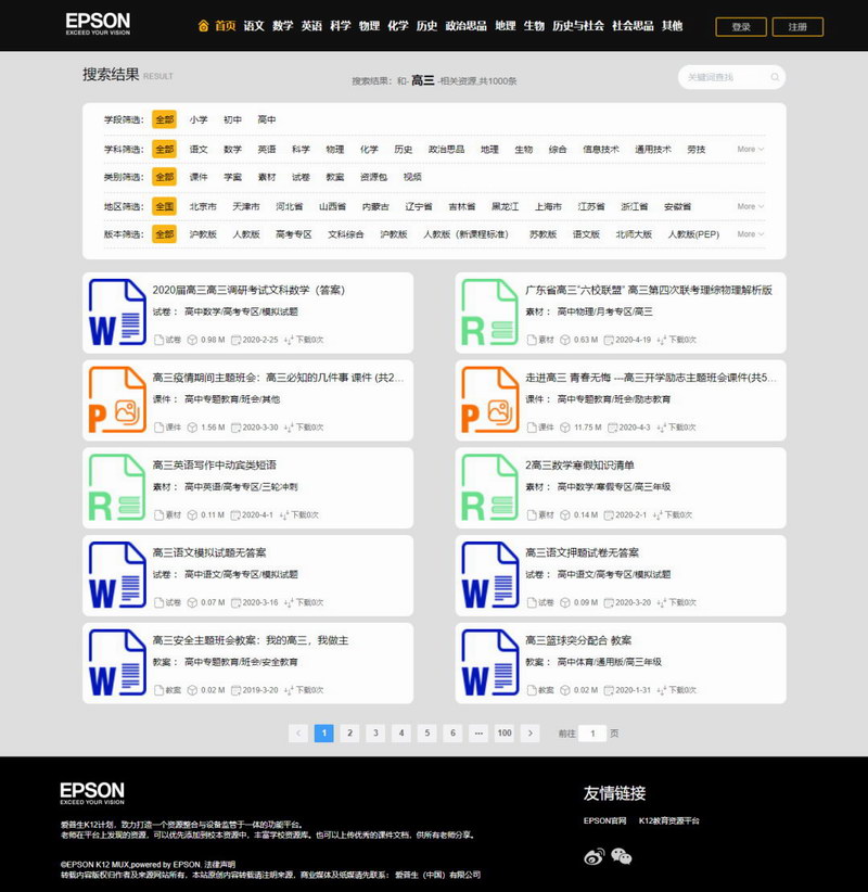 愛普生K12課件資源云平臺覆蓋整個(gè)K12學(xué)段的各個(gè)學(xué)科