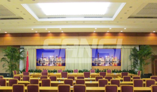 除了在傳統(tǒng)會議室內,同樣點間距的LED顯示系統(tǒng)應用于多功能會議廳亦有不俗的適應性。
