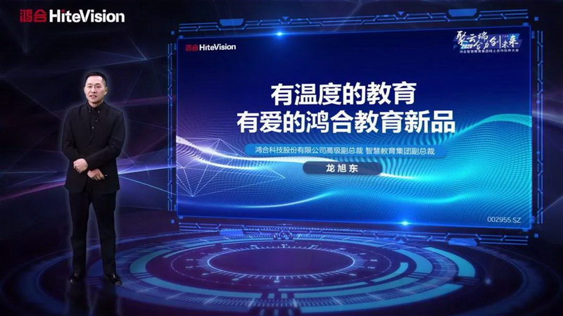 會(huì)議中場(chǎng),鴻合科技智慧教育集團(tuán)高級(jí)副總裁龍旭東詳解介紹了2020年鴻合教育新品,圍繞“專遞課堂”建設(shè)落地,鴻合推出了專為之設(shè)計(jì)的完整生態(tài)解決方案,內(nèi)嵌一系列鴻合先進(jìn)的軟硬件產(chǎn)品,比如具備優(yōu)秀交互顯示能力和技術(shù)創(chuàng)新突破的新款鴻合智慧黑板和交互平板,以及功能強(qiáng)大,簡(jiǎn)潔易用的互動(dòng)錄播設(shè)備。龍總表示:“信息化設(shè)備是老師的工具,而不能是老師的負(fù)擔(dān)!作為教育信息化的領(lǐng)導(dǎo)者,鴻合將一如既往的堅(jiān)持我們的使命,植根中國(guó)教育信息化,服務(wù)億萬師生!”