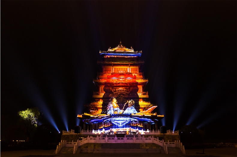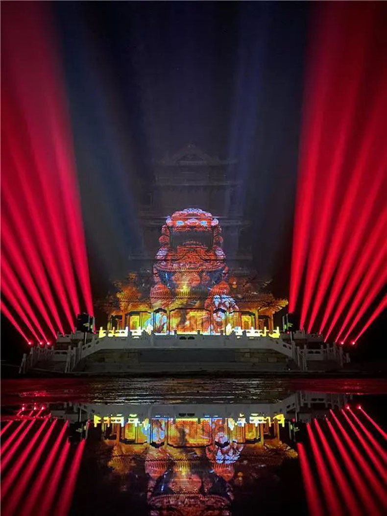大縱湖旅游景區(qū)推出了東晉古城引云閣燈光藝術(shù)投影秀《印象·大縱湖》,此項(xiàng)目由上海張江超藝多媒體系統(tǒng)股份有限公司提供多媒體工程總包,負(fù)責(zé)項(xiàng)目的總設(shè)計(jì)、總制作。將現(xiàn)代化的科技藝術(shù)思維與鹽城獨(dú)具特色的歷史文化、人文風(fēng)情相結(jié)合,以裸眼3D效果和震撼的電影特效呈現(xiàn)一段全新的視覺盛宴,打造東晉水城光影新地標(biāo)。
