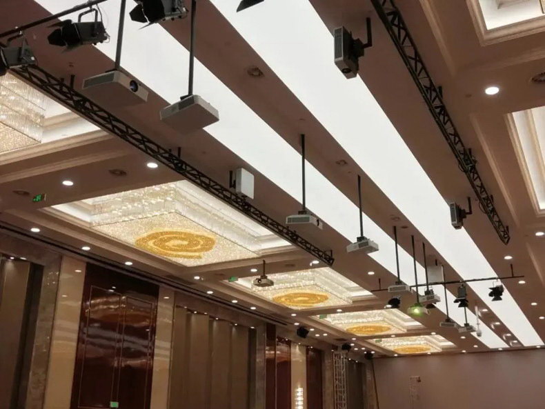 宴會(huì)大廳內(nèi)25*5米整體同步升降全息幕,滿足了展示5D全息宴會(huì)及傳統(tǒng)宴會(huì)的雙模式運(yùn)營(yíng)的需要,需要傳統(tǒng)宴會(huì),升上去;需要5D全息宴會(huì),降下來(lái),并能做到,傳統(tǒng)宴會(huì)與全息宴會(huì)的完美聯(lián)動(dòng),一個(gè)宴會(huì),兩種展示模式,就是這么任性。