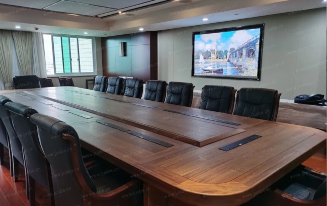 會議室擴(kuò)聲系統(tǒng)設(shè)計(jì)采用的可調(diào)式吸頂天花喇叭。通過對會議室環(huán)境布局、空間大小分析,對擴(kuò)聲設(shè)備(喇叭)點(diǎn)位進(jìn)行了科學(xué)合理的布置和安裝,簡潔隱蔽又美觀,擴(kuò)聲效果完全能夠達(dá)到會議討論,播放音視頻時聲場區(qū)域覆蓋均勻及聲音清晰明亮的需求。在音質(zhì)表現(xiàn)上極富有層次感,為發(fā)言者和與會者提供一個良好的會議溝通氛圍。