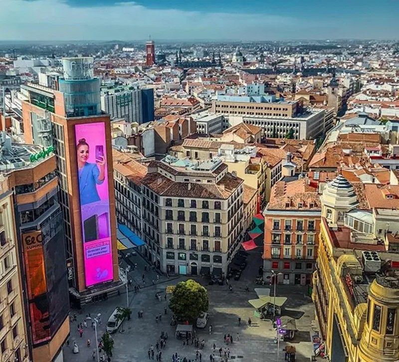 馬德里的 Callao 廣場擁有西班牙最大的戶外 LED 屏幕(由 2 臺 Spyder X20 管理),F(xiàn)被用于顯示新冠肺炎病例的最新數(shù)據(jù),當(dāng)前封鎖期間的建議,以及對一線抗疫人員的感謝。