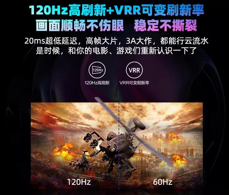 海信游戲電視采用120Hz超高刷新率面板,擁有廣色域技術和高性能畫質芯片,支持HDR10和VRR游戲模式,畫面穩(wěn)定而流暢。海信游戲電視加載了海信自主研發(fā)的AI場景識別和智慧光感系統(tǒng),可以根據(jù)外界環(huán)境光、播放場景、播放內容進行逐幀畫質調教,給玩家強烈代入感的同時保護視覺舒適度,讓游戲體驗更加盡興。