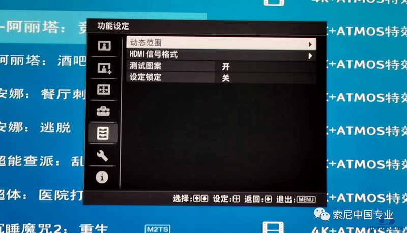 屏幕設定菜單,主要就是鏡頭記憶功能,設置好以后,可以實現(xiàn)16:9和2.35:1畫面模式的一鍵切換。