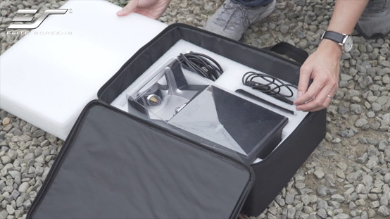 億立投影機的收納包內(nèi)附有減震緩沖海綿層,整體約等于一個公文包的大小,搭配億立戶外便攜幕使用,能真正稱作'移動影院'。