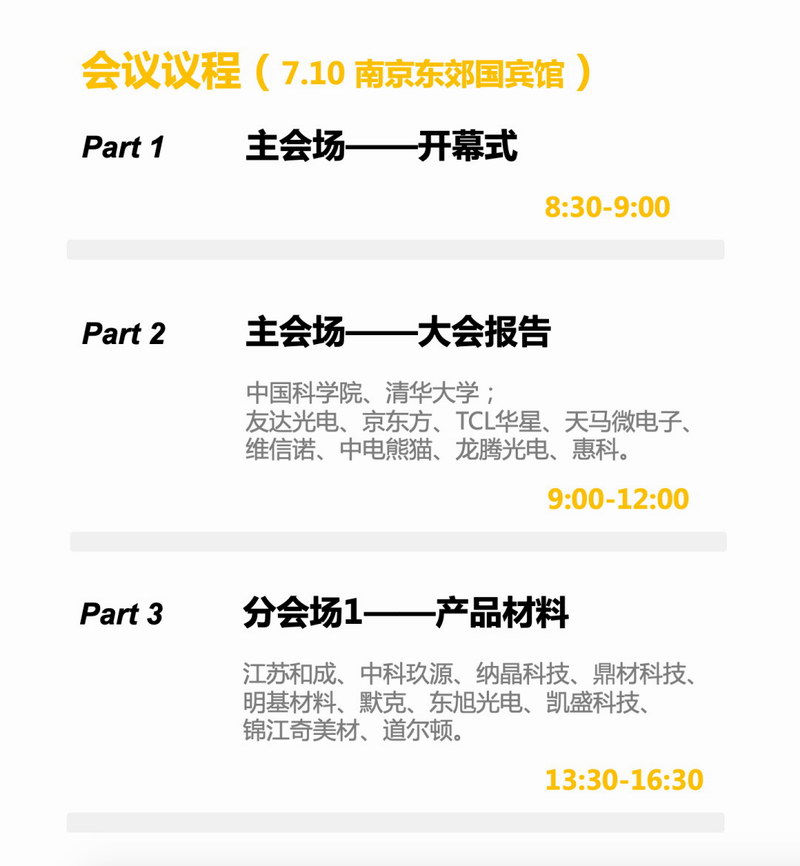 2. 產(chǎn)品材料(玻璃、液晶、OLED材料、PI、光學(xué)膜等)、工藝材料(濕制程化學(xué)品、光刻膠、靶材等)、設(shè)備及備件三場專題分論壇,與會嘉賓與領(lǐng)軍企業(yè)一同深入探討新材料、新設(shè)備的發(fā)展趨勢、加強(qiáng)產(chǎn)業(yè)鏈合作;