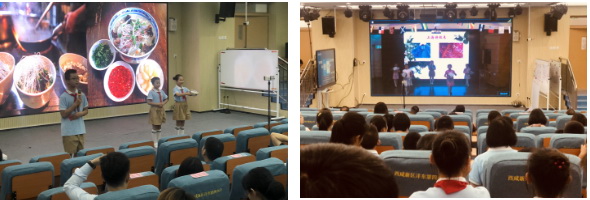 通過(guò)希沃互動(dòng)錄播,兩地學(xué)生分別介紹自己城市的美食、景點(diǎn) 。