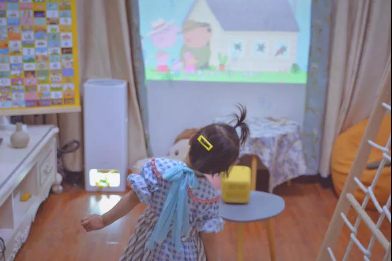 如何才能讓小神獸安靜一會(huì)兒?如何平衡育兒和自己的時(shí)間,變得從容不迫?有些人選擇家用投影機(jī)來幫忙,大畫面投射熱門動(dòng)畫或者互動(dòng)游戲等,吸引孩子流連忘返。但傳統(tǒng)家用投影機(jī)比較脆弱,可能因?yàn)樾芎⒆拥呐鲎捕囃。更重要的是,媽媽們一轉(zhuǎn)身,投影機(jī)電源線可能會(huì)絆倒孩子,鏡頭發(fā)出的光線也許會(huì)刺激孩子稚嫩雙眼。